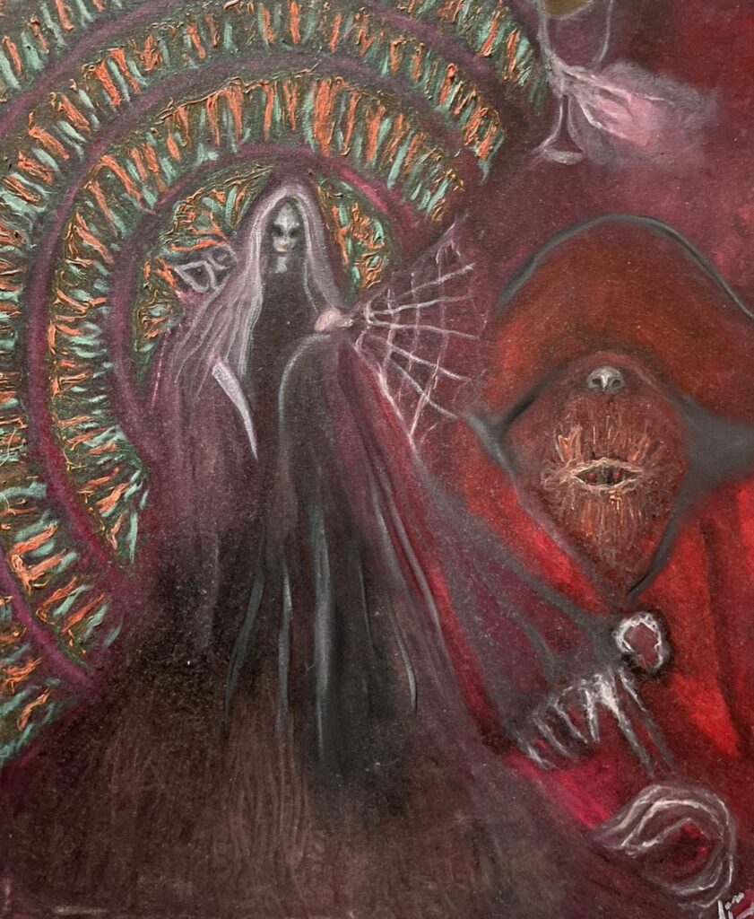 Com uma temática ousada e voltada ao sobrenatural, a artista plástica Jane França levará, a partir das 18h do dia 16 de agosto, sábado, à Tenda Cultura da Praça Luíz Pereira Lima, no Centro de Arapiraca, a exposição “Conjure”, uma série de pinturas que explora o Folk Horror a partir de uma estética surrealista e simbólica.
