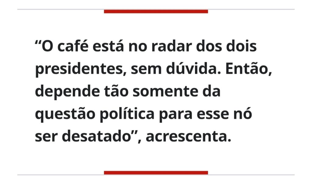 “O decreto aponta o café como um produto não disponível para os EUA e que agrega muito valor para a indústria norte-americana. Então, a retomada de diálogo é fundamental para a concretização de um acordo bilateral”, afirma.