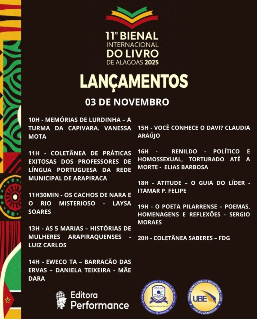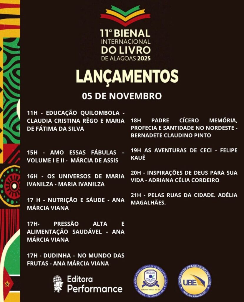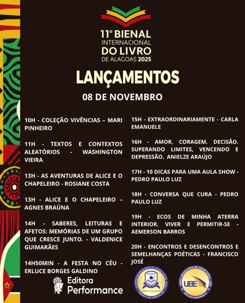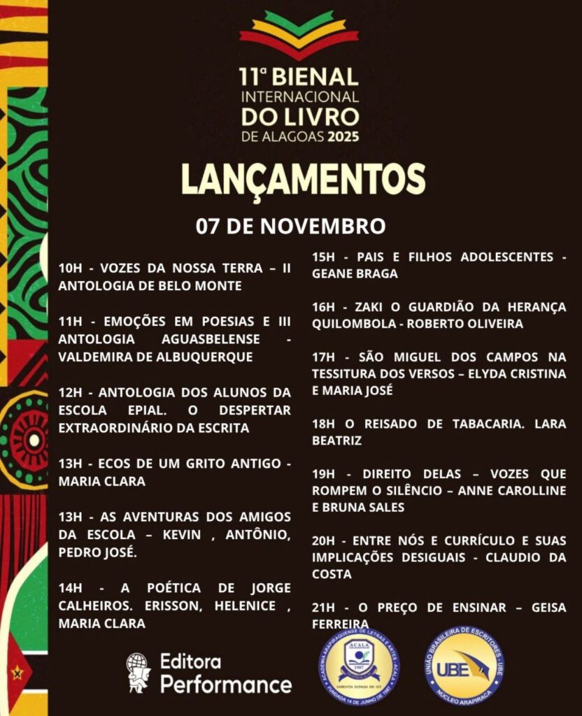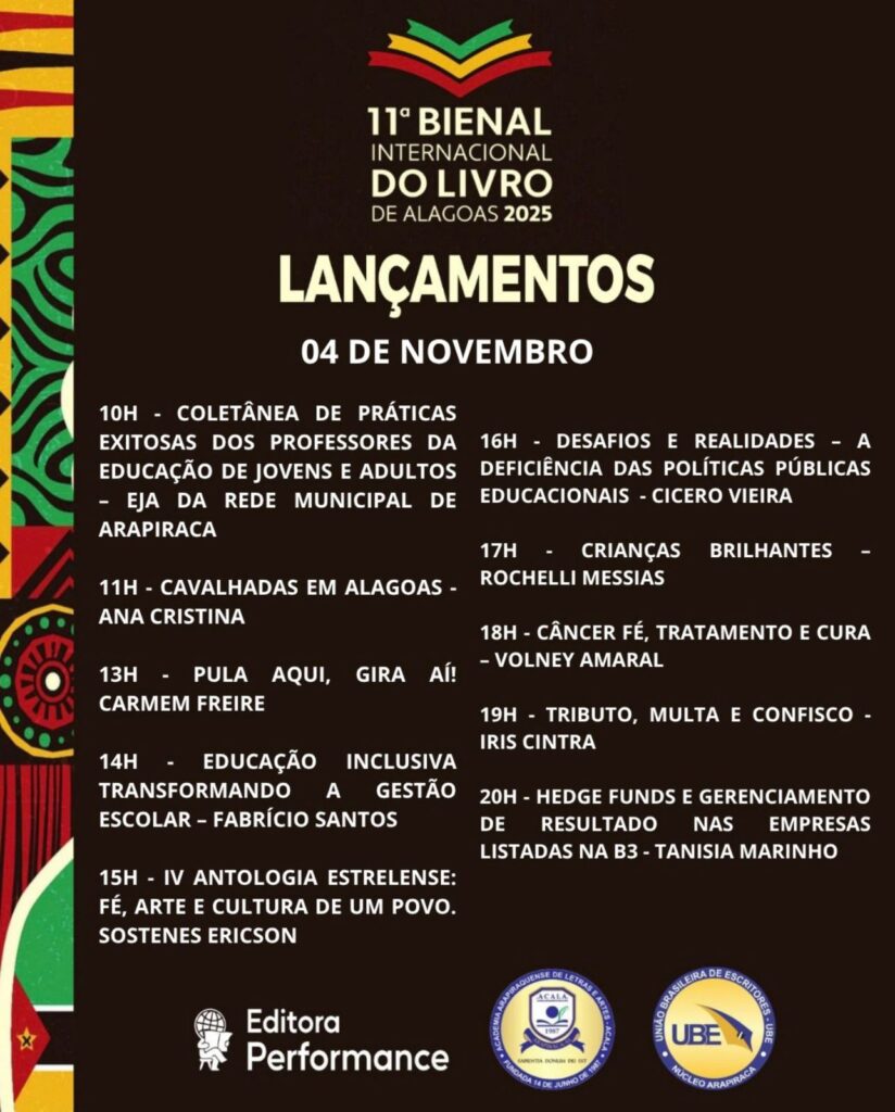 O evento será uma oportunidade única de celebrar a produção literária local, fortalecendo a identidade cultural de Alagoas e mostrando que a criatividade e o talento alagoano têm voz, vez e espaço no cenário nacional. A Editora Performance se consolida como protagonista dessa história, elevando a literatura do estado a um novo patamar.