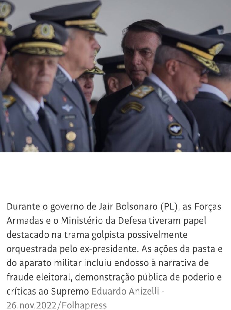 Em entrevista à Folha, o oficial, hoje diretor-geral do Censipam (Centro Gestor e Operacional do Sistema de Proteção da Amazônia), diz que a obrigação de líderes militares “com a responsabilidade que eu e outros tínhamos [integrava o Alto Comando do Exército] naquele momento [após a vitória de Lula e com as pressões por um golpe] era a de se manter estritamente conforme a legislação do país e no estrito cumprimento do dever legal”.