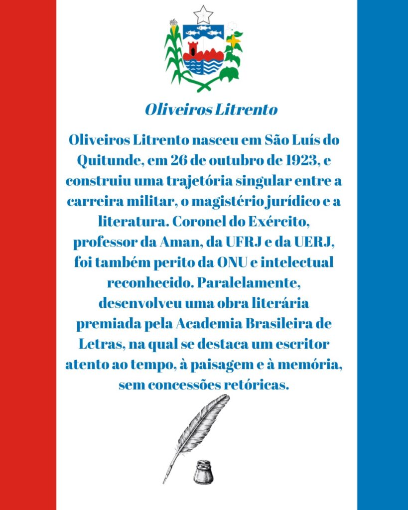 Nesta quinta-feira, a poesia alagoana reverencia Oliveiros Litrento, um nome raro que atravessou com igual rigor o quartel, a sala de aula e a literatura. Nascido em São Luís do Quitunde, em 26 de outubro de 1923, Litrento construiu uma trajetória singular: coronel do Exército, professor da Academia Militar das Agulhas Negras, da UFRJ e da UERJ, perito da ONU e intelectual respeitado em diferentes campos do saber. Mas foi na palavra escrita que encontrou o território mais duradouro de sua inquietação.
