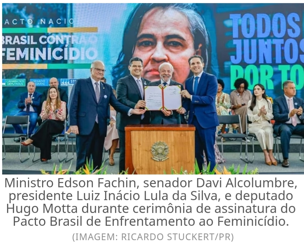 Também participaram da assinatura os presidentes do Senado, Davi Alcolumbre, da Câmara dos Deputados, Hugo Motta, e do Supremo Tribunal Federal (STF), Edson Fachin, além do procurador-geral da República, Paulo Gonet, e do defensor público-geral federal em exercício, Marcos Paderes. Para Fachin, trata-se de um dos pactos republicanos mais relevantes já firmados, diante da urgência de impedir mortes evitáveis e garantir dignidade, autonomia e liberdade às mulheres.