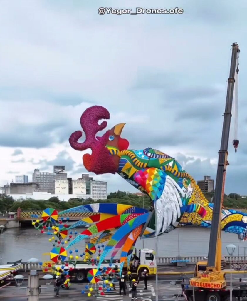 Com 32 metros de altura e oito toneladas, o Galo homenageia duas figuras que dedicaram a vida a cuidar do outro: Dom Helder Câmara, o arcebispo que fez da fé um ato de resistência e amor ao povo, e Nise da Silveira, a médica que enxergou na arte um caminho para libertar mentes e acolher dores invisíveis.