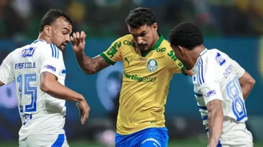 O Palmeiras foi decisivo nos minutos iniciais e praticamente definiu o confronto ainda no primeiro tempo. Aos seis minutos, o árbitro marcou pênalti após o goleiro Fábio derrubar Vitor Roque dentro da área. O próprio atacante assumiu a cobrança e converteu com segurança, abrindo o placar.