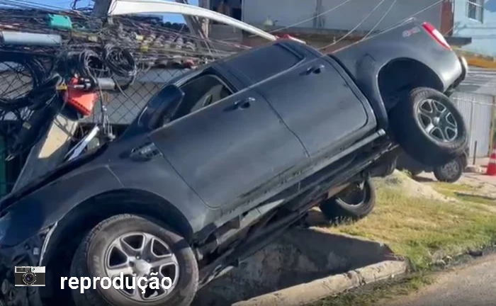 Equipes da Polícia Militar e guarnições da concessionária de energia estão no local. Técnicos trabalham para desligar a rede elétrica e reparar o poste, enquanto um guincho foi acionado para remover a caminhonete da pista.