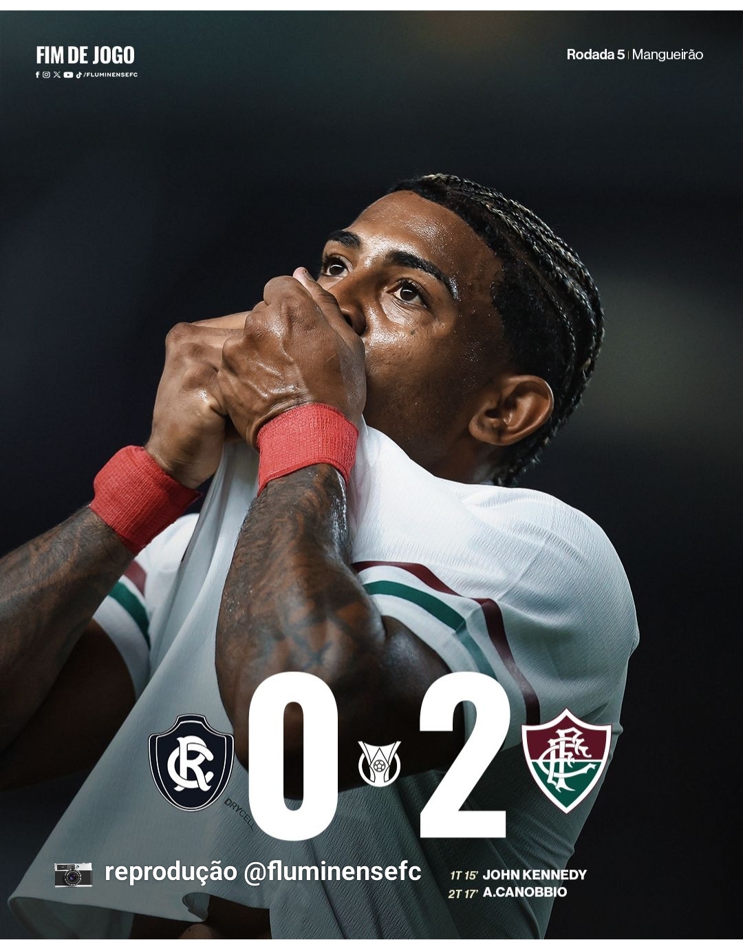 O Fluminense derrotou o Clube do Remo por 2 a 0 na noite desta quinta-feira (12), no Estádio Mangueirão, em Belém, pela quinta rodada do Campeonato Brasileiro Série A. Os gols do time carioca foram marcados por John Kennedy e Agustín Canobbio.