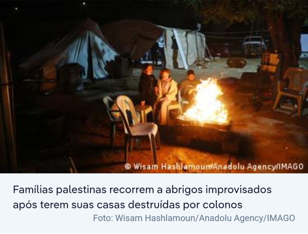 Desde os ataques realizados pelo grupo islamista Hamas em Israel em 7 de outubro de 2023 — que desencadearam a guerra na Faixa de Gaza — organizações internacionais relatam um aumento expressivo da violência de colonos na Cisjordânia. Dados das Nações Unidas indicam que moradores de pelo menos 45 comunidades palestinas já foram expulsos de suas casas.